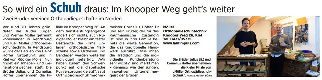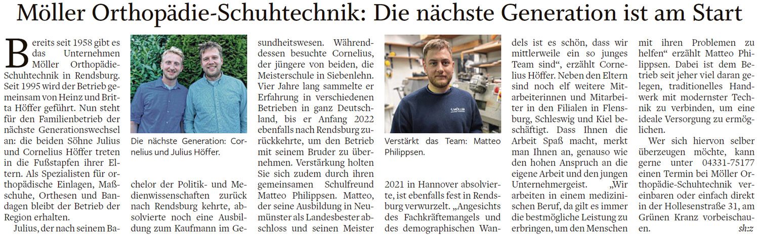 Möller Orthopädie-Schuhtechnik: Die nächste Generation ist am Start (SHZ, 24.10.2023)